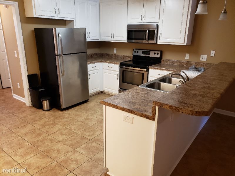 It has a split floor plan (nearly 1500 square feet) with an open concept living area. Master bedroom has his and her closets, double vanities, and a jetted tub. Beautiful custom cabinets with a eat at breakfast bar in kitchen. Stainless-steel appliances include- glass cooktop stove/oven, microwave, dishwasher, and fridge as well as washer and dryer. Back patio, with fenced in yard, offers a locked storage closet; includes lawn service. Pets can be approved, prefer they be spade and neutered and less than 20lbs.