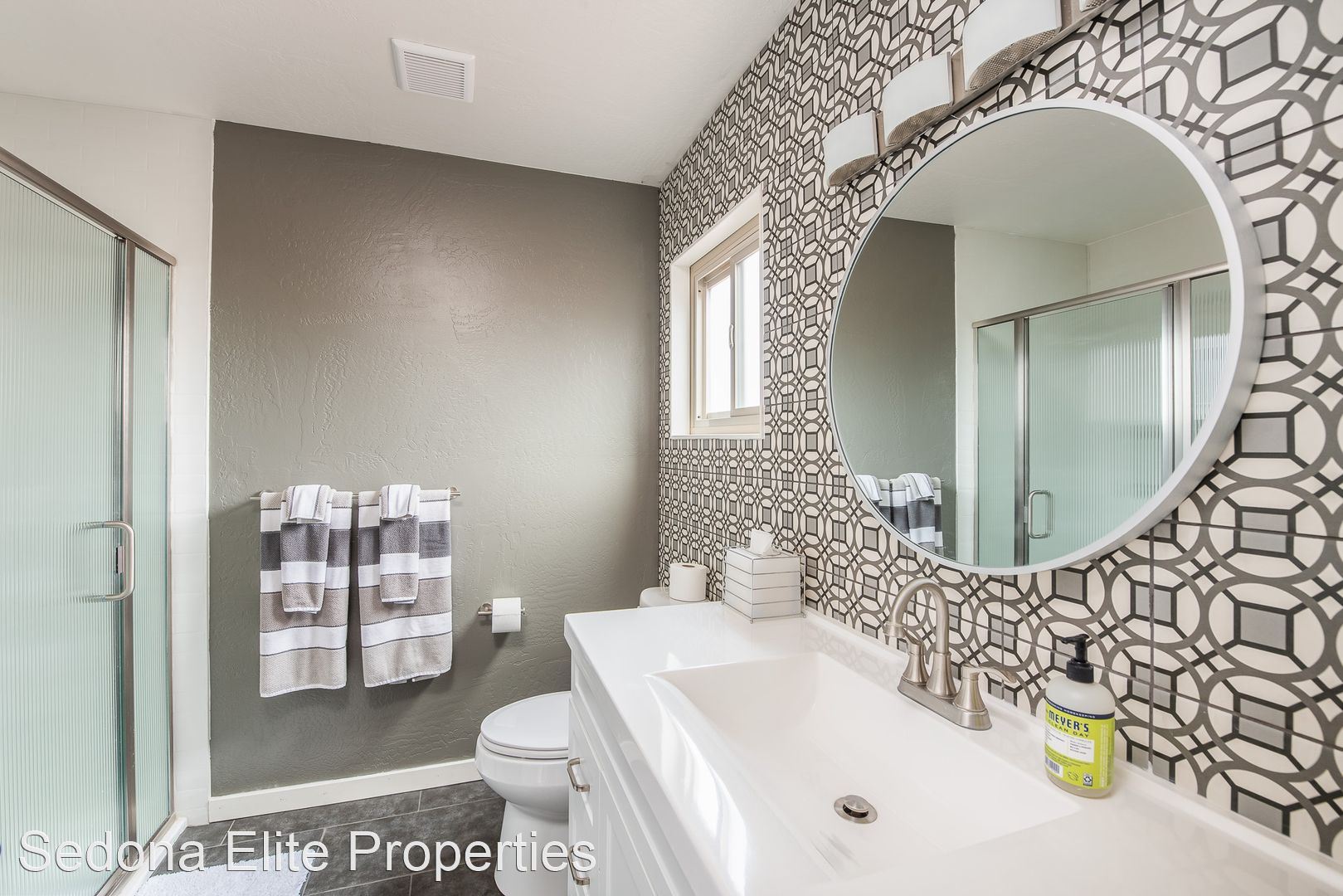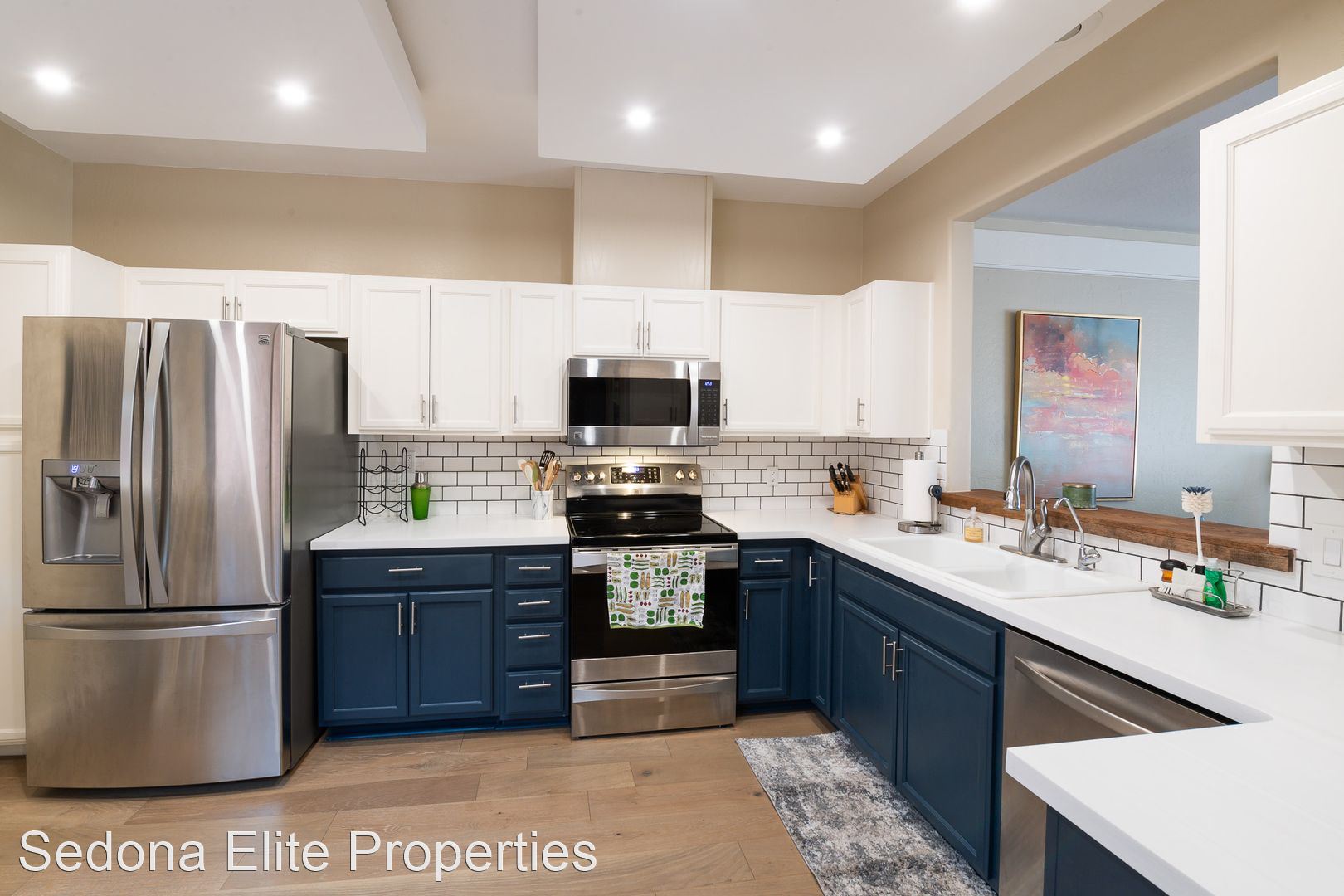 Furnished, Nepenthe, 1 Month Minimum - This coveted two story, two bedroom Nepenthe unit is located in the heart of West Sedona. Completely redone in 2020, this property boasts a completely refinished kitchen with stainless steel appliances, quartz countertops, and beautifully refinished cabinetry. Complete with a private gated entryway, enter the covered entryway into the refinished great room with a gas fireplace, dining area, and passthrough to the kitchen perfect for entertaining. Guests have access to a thoughtfully redone half bath on the first floor.