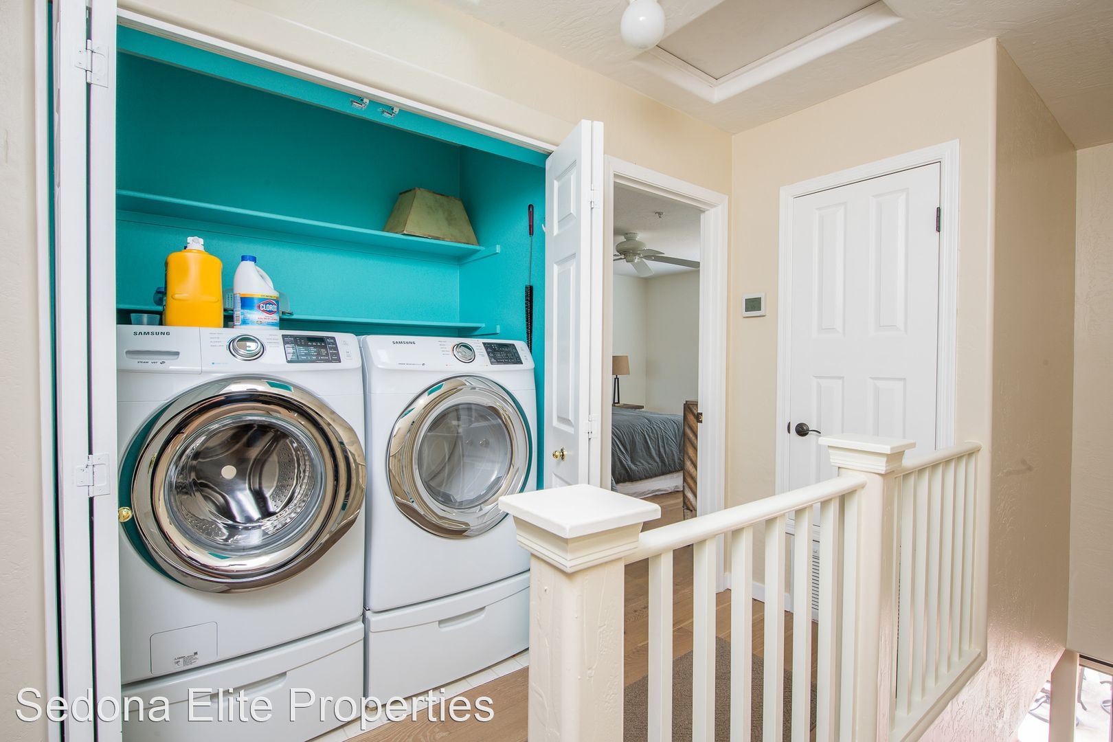 Step upstairs and find two large bedrooms with a full laundry area off the stairwell. Both upstairs bedrooms have been refinished to include hard surface flooring and both maintain their own en-suite bathrooms and ceiling fans.