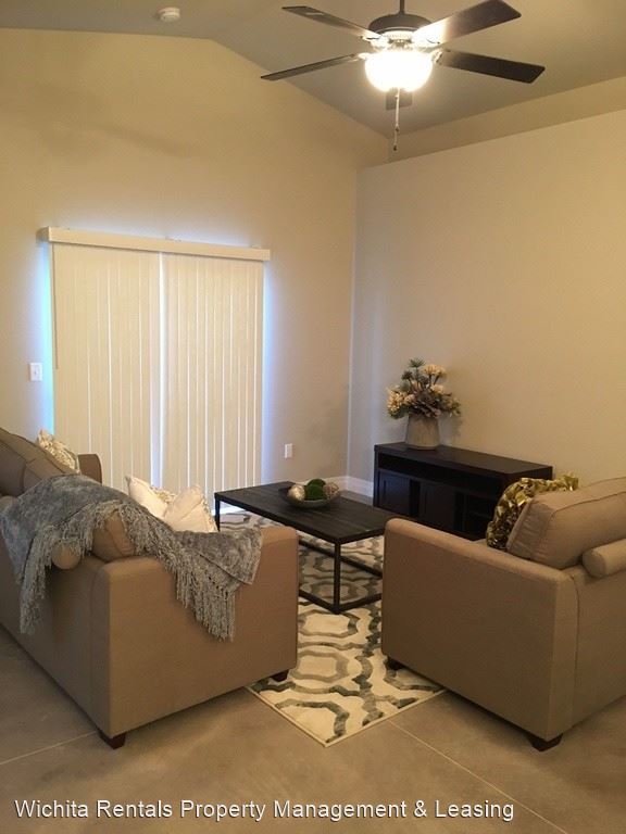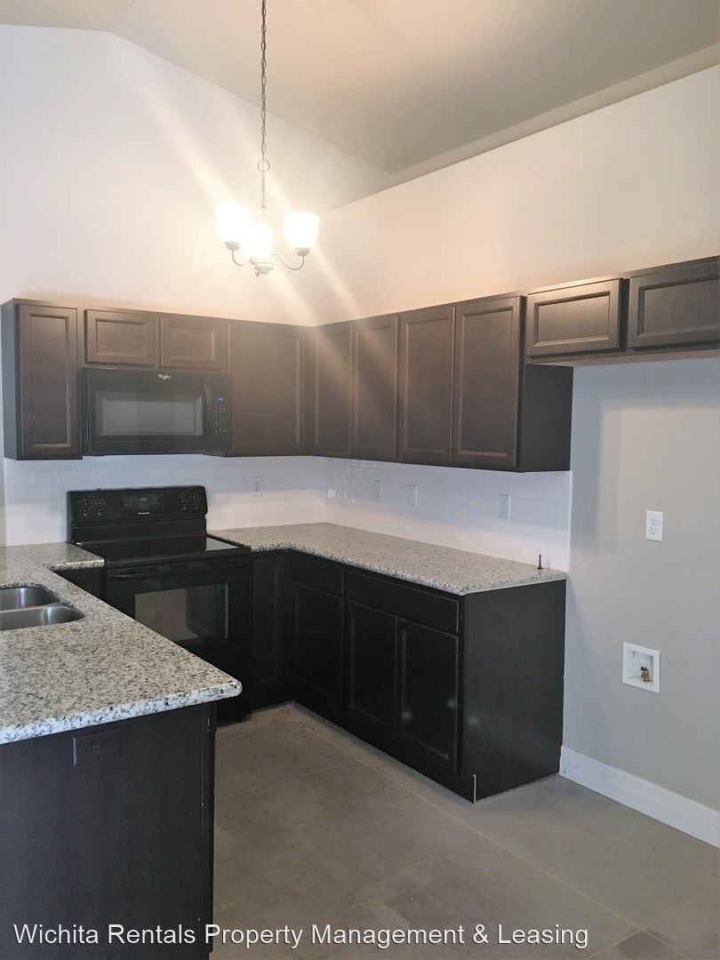 Great location for Wichita State University housing! - Newer maintenance free twin home. Located near 45th N and Hillside with easy access to HWY 254. This unit has vaulted ceilings, an open layout and patios. Three bedroom, two bath, two car garage and finished concrete floors. Dishwasher, refrigerator, electric range, and space saver microwaves are provided. All mowing and maintenance is included in the rent. Tenant is responsible for all utilities. Landlord is responsible for lawn maintenance. Small dogs are welcome with a non refundable pet fee of $250 per pet. $1450 Rent $1200 Security Deposit $35 application fee PER adult - Non refundable Application and security deposit is required to hold a property. To schedule a showing please click the link below: https://app.lethub.co/#/company/Wichita-Rentals-Property-Management-and-Leasing 316-260-2288 Apply online at: www.wichitarentals.net